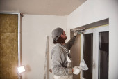 Zdjęcie "Workman tynkowania ścian gipsowych wewnątrz domu." może być wykorzystywane do celów osobistych i komercyjnych zgodnie z warunkami zakupionej licencji Royalty-free. Obraz jest dostępny do pobrania w jakości wysokiej rozdzielczości do 5760x3840.