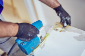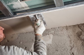 Zdjęcie "Workman tynkowania ścian gipsowych wewnątrz domu." może być wykorzystywane do celów osobistych i komercyjnych zgodnie z warunkami zakupionej licencji Royalty-free. Obraz jest dostępny do pobrania w jakości wysokiej rozdzielczości do 5760x3840.