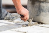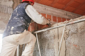 Zdjęcie "Workman tynkowania ścian gipsowych wewnątrz domu." może być wykorzystywane do celów osobistych i komercyjnych zgodnie z warunkami zakupionej licencji Royalty-free. Obraz jest dostępny do pobrania w jakości wysokiej rozdzielczości do 5760x3840.