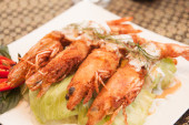 Zdjęcie "głęboko smażone krewetki z tajskiego curry." może być wykorzystywane do celów osobistych i komercyjnych zgodnie z warunkami zakupionej licencji Royalty-free. Obraz jest dostępny do pobrania w jakości wysokiej rozdzielczości do 5760x3840.