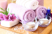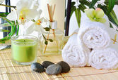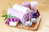 spa i odnowy biologicznej ustawienie z mydła naturalne, świece i ręcznik