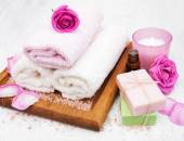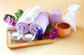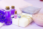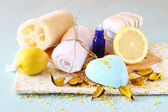 spa i odnowy biologicznej ustawienie z mydła naturalne, świece i ręcznik