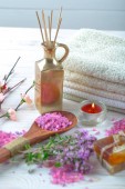 spa i odnowy biologicznej ustawienie z mydła naturalne, świece i ręcznik