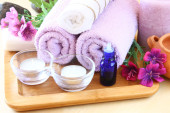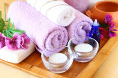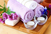 spa i odnowy biologicznej ustawienie sól do kąpieli naturalne, świece i ręcznik