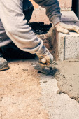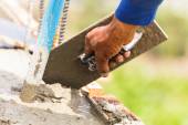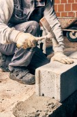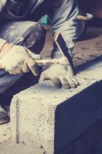 Robotnik budowlany na ciężkim miejscu robi ciężką pracę.