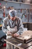 Zdjęcie "Kobieta stolarz szlifowanie stare okno w warsztacie retro." może być wykorzystywane do celów osobistych i komercyjnych zgodnie z warunkami zakupionej licencji Royalty-free. Obraz jest dostępny do pobrania w jakości wysokiej rozdzielczości do 5760x3840.