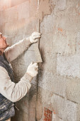 Worksman tynkowania ścian gipsowych wewnątrz domu.