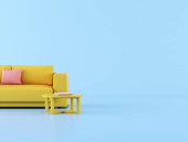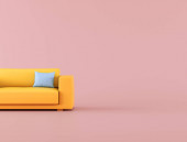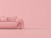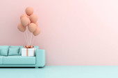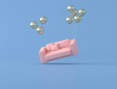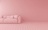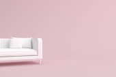Makieta różowy sofa na niebieskim tle, minimalne pojęcie, renderowanie 3D.