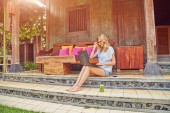 Zdjęcie "Freelancer pracy online na ganku domu w okresie letnim." może być wykorzystywane do celów osobistych i komercyjnych zgodnie z warunkami zakupionej licencji Royalty-free. Obraz jest dostępny do pobrania w jakości wysokiej rozdzielczości do 5760x3840.