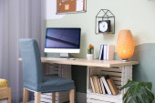 Ruchome pudełko na biurku w biurze. Koncepcja promocji pracy