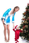 Szczęśliwa mama i dziecko pozowanie w Kostiumy sylwestrowe