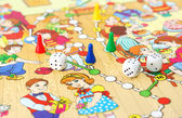 Gry planszowe dla domu. Kolorowe wióry plastikowe i kości na