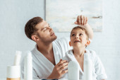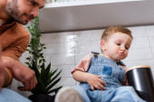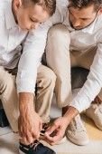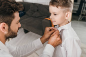 Zdjęcie "częściowy widok tata pomaga synowi ubrać" może być wykorzystywane do celów osobistych i komercyjnych zgodnie z warunkami zakupionej licencji Royalty-free. Obraz jest dostępny do pobrania w jakości wysokiej rozdzielczości do 5760x3840.