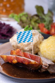 Zdjęcie "pieczona wieprzowina bawarska z pierogami " może być wykorzystywane do celów osobistych i komercyjnych zgodnie z warunkami zakupionej licencji Royalty-free. Obraz jest dostępny do pobrania w jakości wysokiej rozdzielczości do 5760x3840.