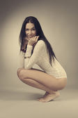 młoda kobieta pozuje do zdjęcia moda odkryty w porcie miasta