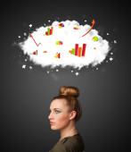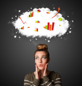 Young woman gesturing with cloud and charts concept