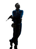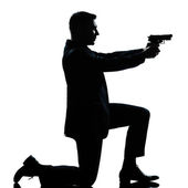 gangster człowiek trzyma karabin maszynowy thompson sylwetka