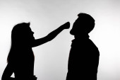 Zdjęcie "Koncepcja agresji i nadużyć-mężczyzna i kobieta wyrażająca przemoc domową w studio sylwetka na białym tle." może być wykorzystywane do celów osobistych i komercyjnych zgodnie z warunkami zakupionej licencji Royalty-free. Obraz jest dostępny do pobrania w jakości wysokiej rozdzielczości do 5760x3840.