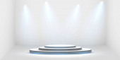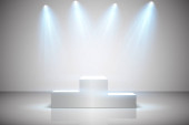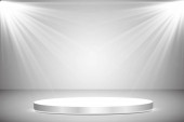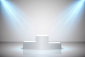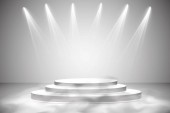 Zdjęcie "Okrągłe podium, cokot lub platforma oświetlona przez reflektory na szarym tle. Scena z malowniczymi światłami. Ilustracja wektorowa." może być wykorzystywane do celów osobistych i komercyjnych zgodnie z warunkami zakupionej licencji Royalty-free. Obraz jest dostępny do pobrania w jakości wysokiej rozdzielczości do 5760x3840.