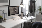 Ruchome pudełko na biurku w biurze. Koncepcja promocji pracy
