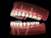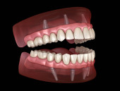 Zdjęcie "Proteza Maxillary i Mandibular z gumą Wszystko na 4 system obsługiwany przez implanty. Medycznie dokładna ilustracja 3D ludzkich zębów i protez" może być wykorzystywane do celów osobistych i komercyjnych zgodnie z warunkami zakupionej licencji Royalty-free. Obraz jest dostępny do pobrania w jakości wysokiej rozdzielczości do 5760x3840.
