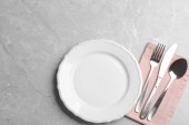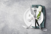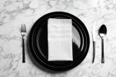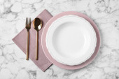 Eleganckie ustawienie stołu na marmurowym stole, płaskie lay