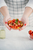 Świeże pyszne sałatki z pomidorami. Świeże zielone sałatki