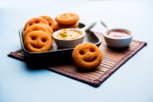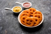 Rangoli z różnych indyjskich słodyczy/Mithai w misce dla Diziego lub innych festiwalach, selektywne skupienie