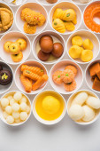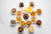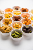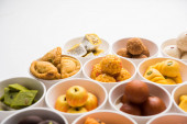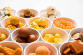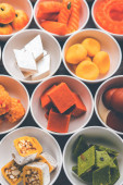 Rangoli z różnych indyjskich słodyczy/Mithai w misce dla Diziego lub innych festiwalach, selektywne skupienie