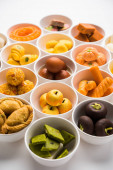 Rangoli z różnych indyjskich słodyczy/Mithai w misce dla Diziego lub innych festiwalach, selektywne skupienie