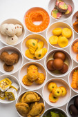 Rangoli z różnych indyjskich słodyczy/Mithai w misce dla Diziego lub innych festiwalach, selektywne skupienie