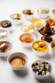 Rangoli z różnych indyjskich słodyczy/Mithai w misce dla Diziego lub innych festiwalach, selektywne skupienie