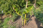 Banan drzewo z nowymi świeżych liści rośnie piękne