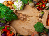 Zdrowe wegetariańskie sezonowe jedzenie gotowania tła. Płasko-lay jesiennych warzyw i ziół jak pietruszka, szpinak, Mangold, widok z góry, przestrzeń kopiowania. Czyste jedzenie, dieta alkaliczna