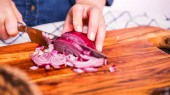 Kobieta gotowanie w nowej kuchni podejmowania zdrowej żywności z warzyw