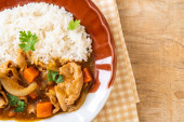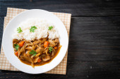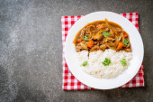 Japoński curry ryż z plasterki wieprzowiny, marchwi i cebuli