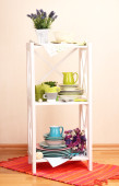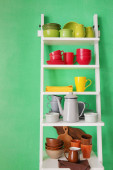 piękne białe meble z naczynia i wystrój, na tle ściany kolor