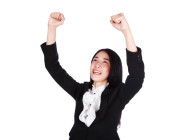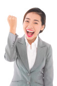 na białym tle powodzenie młody biznes kobieta na białym tle