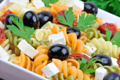 Zdjęcie "Grecki Sałatka z makaronem w stylu śródziemnomorskim" może być wykorzystywane do celów osobistych i komercyjnych zgodnie z warunkami zakupionej licencji Royalty-free. Obraz jest dostępny do pobrania w jakości wysokiej rozdzielczości do 5760x3840.