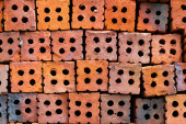 Stos czerwone cegły, które są ułożone w tle dla kon