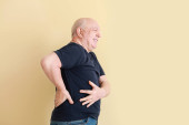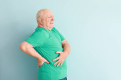 Starszy mężczyzna cierpi na ból w barku na jasnym tle