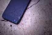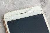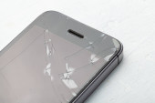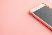Rozbity szklany telefon. Pęknięcia na wyświetlaczu telefonu komórkowego. Kopiuj miejsce na tekst.
