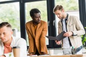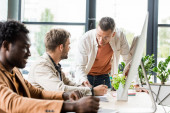 wybiórczy nacisk na wielokulturowych przedsiębiorców omawiających projekt start-upu w biurze