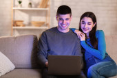 Zdjęcie "Młoda para spędza czas w domu, człowiek za pomocą laptopa" może być wykorzystywane do celów osobistych i komercyjnych zgodnie z warunkami zakupionej licencji Royalty-free. Obraz jest dostępny do pobrania w jakości wysokiej rozdzielczości do 5760x3840.