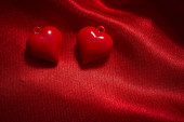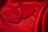 piękne czerwone serca dekoracyjne na Walentynki na pięknej tkaniny jedwabne, zbliżenie