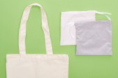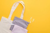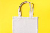 Widok z góry bawełny biały ekologiczny worek na białym tle na żółto