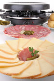 Topienie sera raclette z ziemniakami, salami i szynką