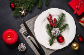 Zdjęcie "Świąteczne ustawienie stołu na czarno" może być wykorzystywane do celów osobistych i komercyjnych zgodnie z warunkami zakupionej licencji Royalty-free. Obraz jest dostępny do pobrania w jakości wysokiej rozdzielczości do 5760x3840.