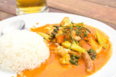 suszone czerwone kokosowe curry z wieprzowiny, jedzenie Tajlandia