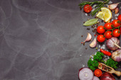 Zdjęcie "Świeże zioła i przyprawy na czarnym kamiennym stole. Koncepcja gotowania. Fre" może być wykorzystywane do celów osobistych i komercyjnych zgodnie z warunkami zakupionej licencji Royalty-free. Obraz jest dostępny do pobrania w jakości wysokiej rozdzielczości do 5760x3840.